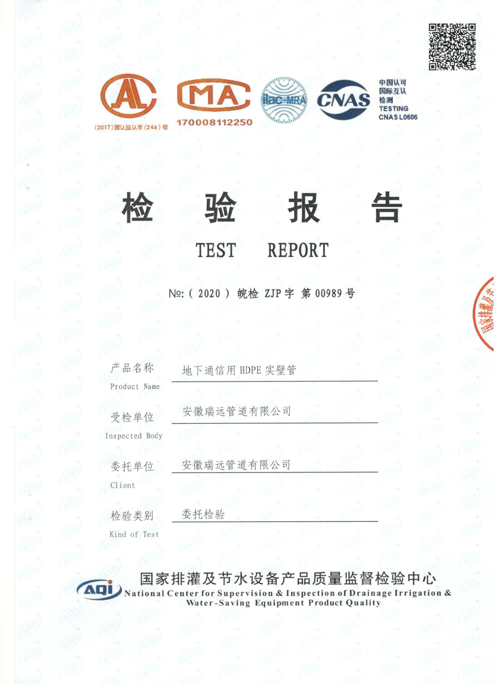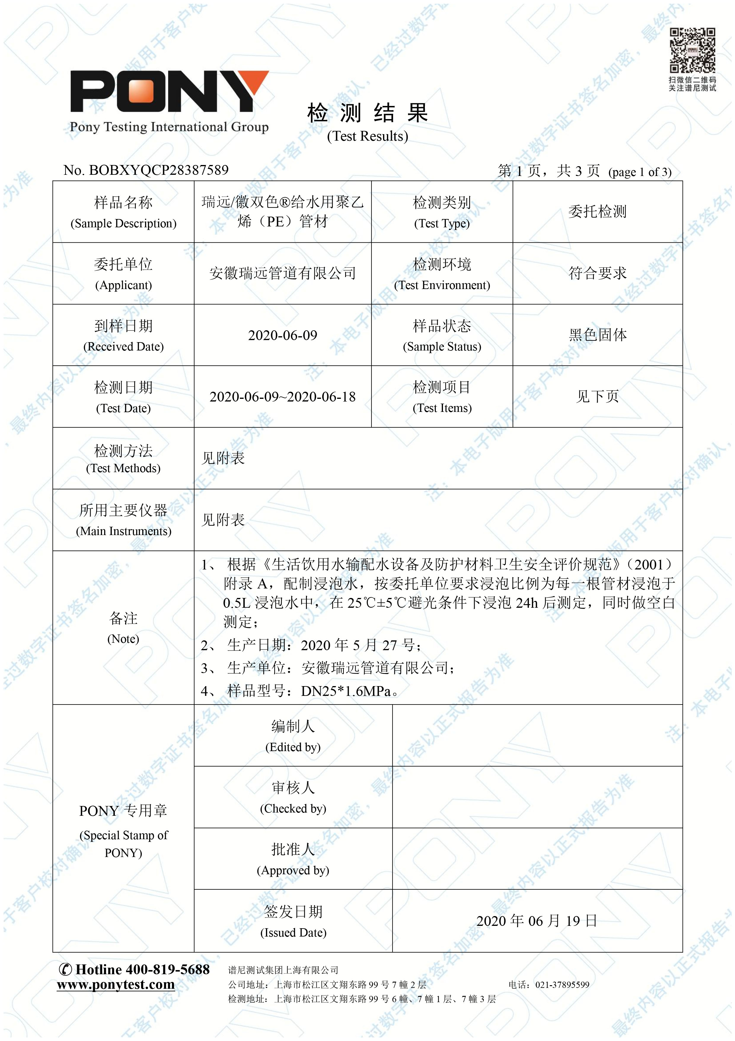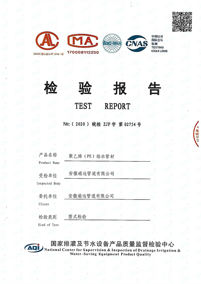 瑞遠PE給水衛(wèi)生批件