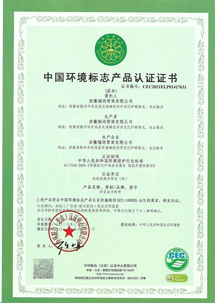 環(huán)境管理體系證書